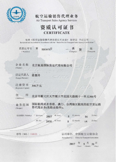 北京航易国际货运代理有限公司是2008年经中华人民共和国对外经贸部、中国民用航空总局和海关总署、出入境检验检疫局等批准成立,在国家工商行政管理总局登记注册的一类货运代理企业。是IATA(国际航空协会)货运会员,中国国际货运代理协会一类代理会员、中国物流及采购联合会会员。北京海关高级认证企业、报检A类企业。公司有业务部、客服部、单证部、操作部、报关部、报检部、财务部、行政部,各部门协同工作为客户提供更快更好的服务。各部门主管人员都具有扎实的理论知识和丰富的实战经验。有行业十几年从业经验,熟悉港口进出口全流程操作,形成了解决进出口商检,报关疑难问题和医疗器械、电子产品、机电产品、鲜活产品等疑难操作为特色的业务。北京航易以质量第一、客户至上,规范申报的宗旨为全球和国内各地的大中小企业提供优质的报关和国际运输服务。
